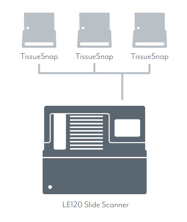 Multiple TissueSnap preview stations, in different locations, can feed a single high throughput scanner, optimizing workflow.